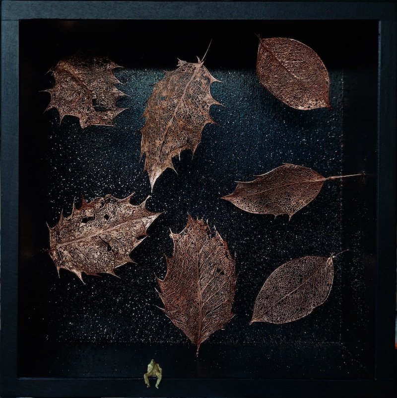 feuilles de houx en cuivre, personnage en laiton